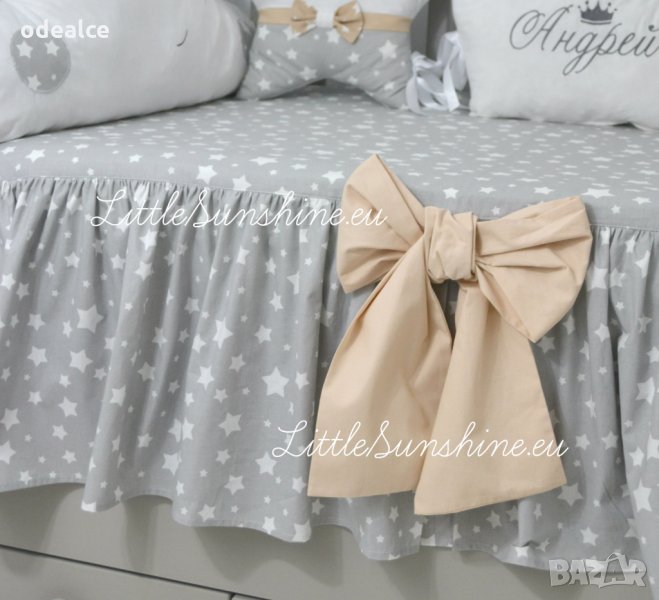 Красива Драперия /подматрачно чаршафче/ с голяма текстилна панделка за бебешко легло / легълце