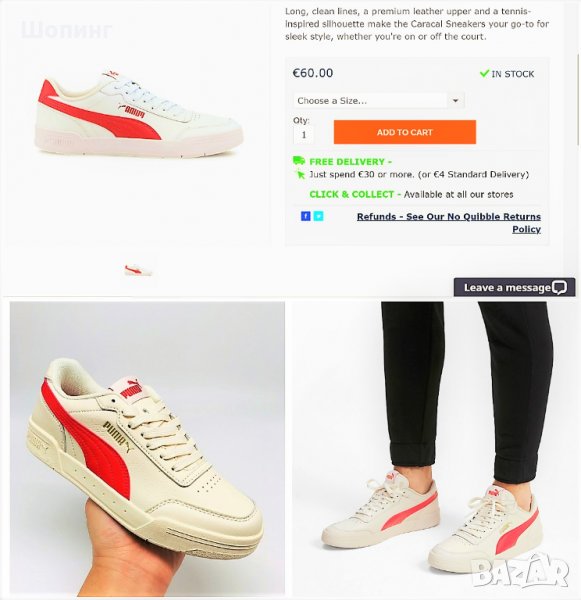 НОВО! Оригинални спортни обувки Puma - естествена кожа, с всички етикети и кутия. №39, стелка 25 см. Унисекс. Бяло и наситено червено. Силует, вдъхновен от тениса, подходящ