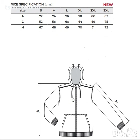 Размери: S, M, L, XL, 2XL, 3XL