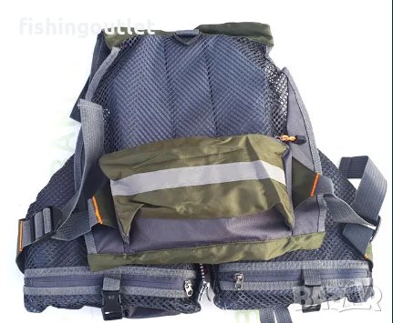 На гърба на елека има вентилационна мрежа, която позволява безпроблемно да се риболовства и в летните горещини.
