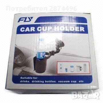 Това е стойка за чаши, която е предназначена за автомобил. Подходяща е за бутилка, алуминиев кен, чаша, термос, каничка и др. или накратко - всякакви чаши, бутилки и кутии за пиене. Закрепва се за прозорците на колата с вакуум чрез механичен ключ. В нея напитката е стабилно и сигурно поставена. Вътрешният диаметър на чашата, която е към стойката е 85 мм. Има два начина за захват на чашата на самата поставка чрез две отделни резби и с регулация на 360°.Комплектът съдържа: чупещо рамо с регулация и вакуум и чаша за напитки