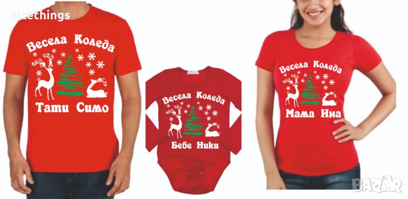 Бебешки коледни бодита в бяло или червено,цена 17 лв/бр.Може да поръчате и с име на вашето бебе.Изработвам и семейни коледни комплекти