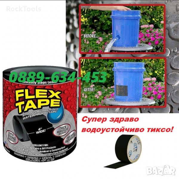 Flex Tape е супер силна, гумирана, водоустойчива лента, която може да залепва, свързва, запечатва и ремонтира почти всичко. Спира незабавно течове.