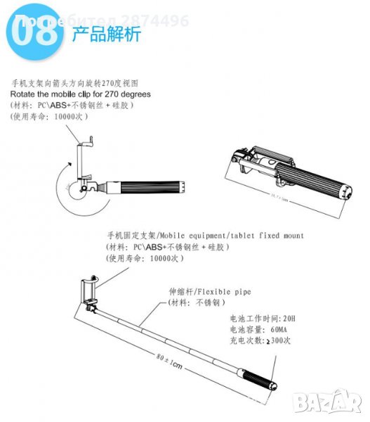 Сгъваем селфи стик с блутут 006