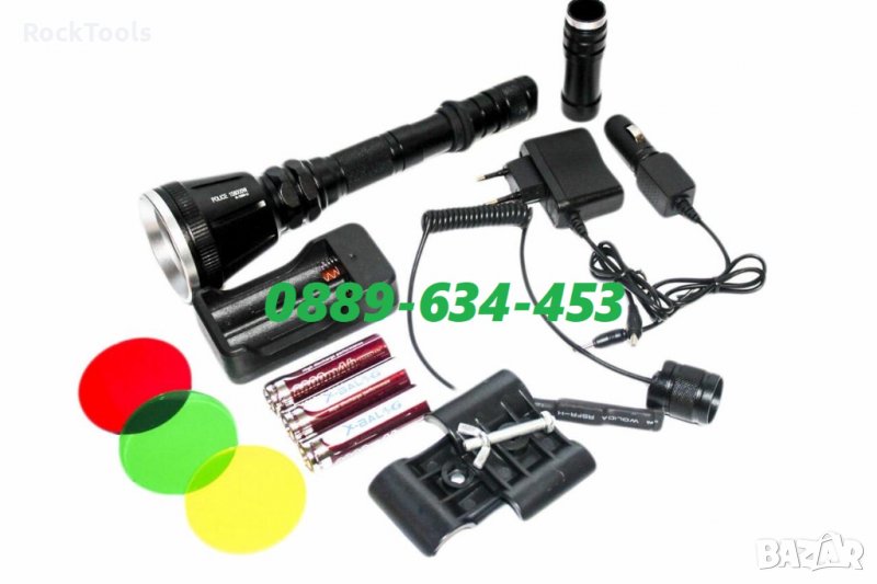 Мощен ловен фенер BL-Q3888-T6 за монтаж на оръжие, фенера е окомплектован с дистанционен изнесен бутон с кабел, три цветни филтъра (червено, жълто, зелено) и крепеж за оръжието. Светлинният лъч е с фиксиран фокус – ярък обхват на лъча в диапазон до 300 метра.