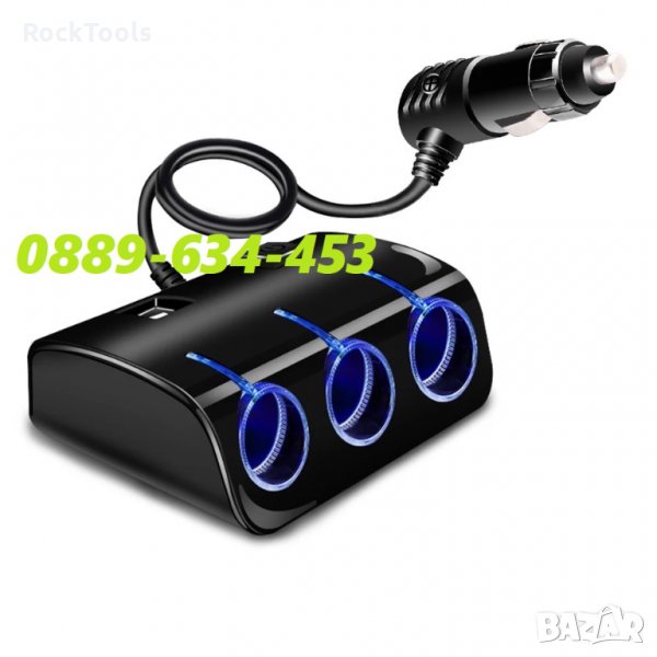 С този троен разклонител за запалка на автомобил 12V за зареждане на Таблети, Навигации, Телефони, Игри и други е все по-необходим, удобен и търсен продукт с елегантен дизайн и индикатор за захранване.