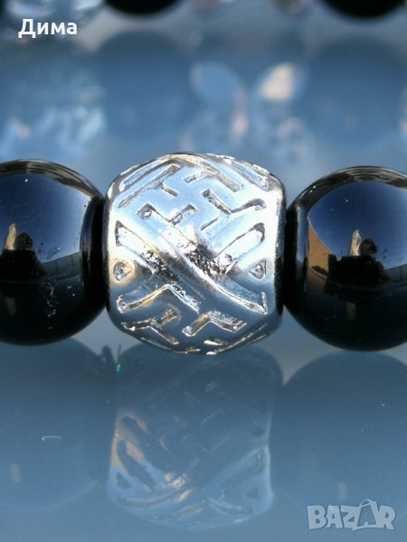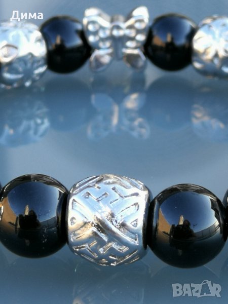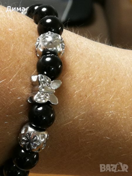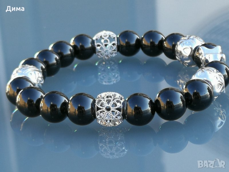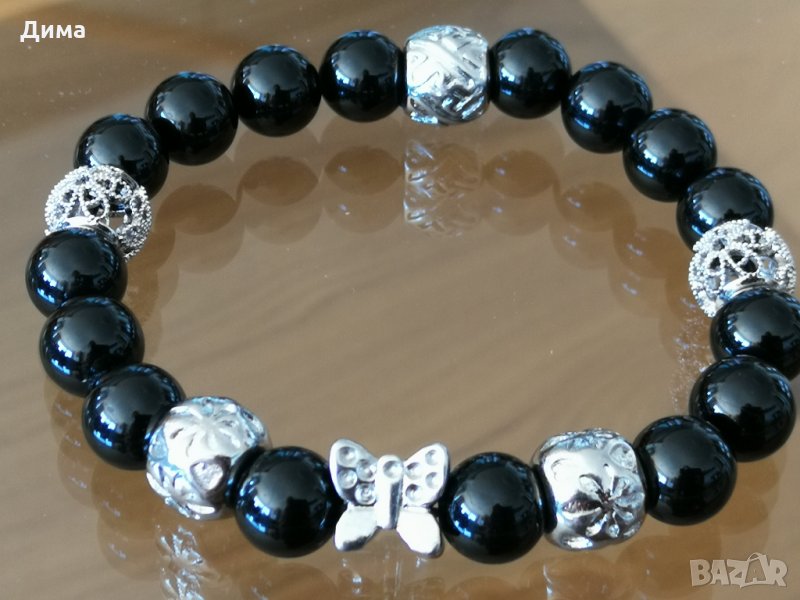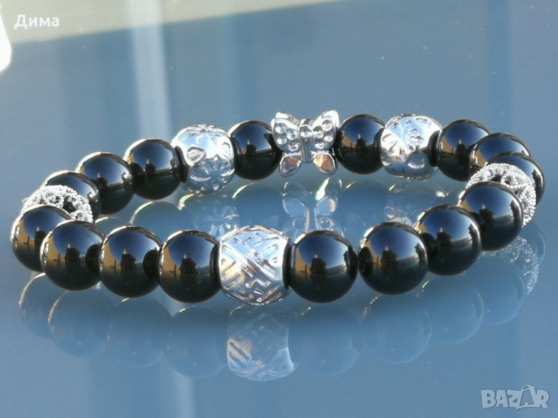 Много красива и елегантна Дамска Гривна от 10 мм Натурален Черен Турмалин и Неръждаема Стомана.