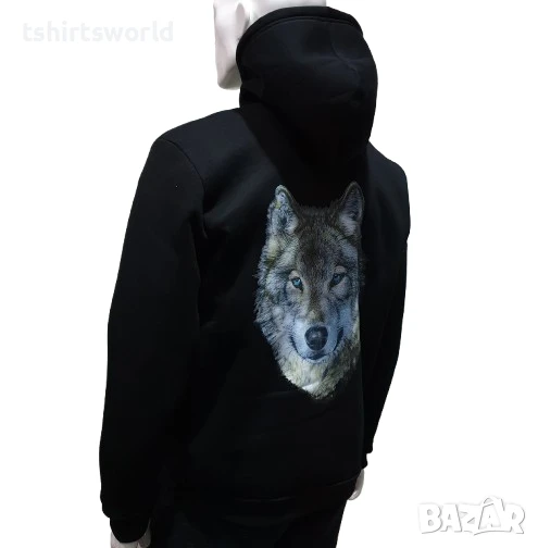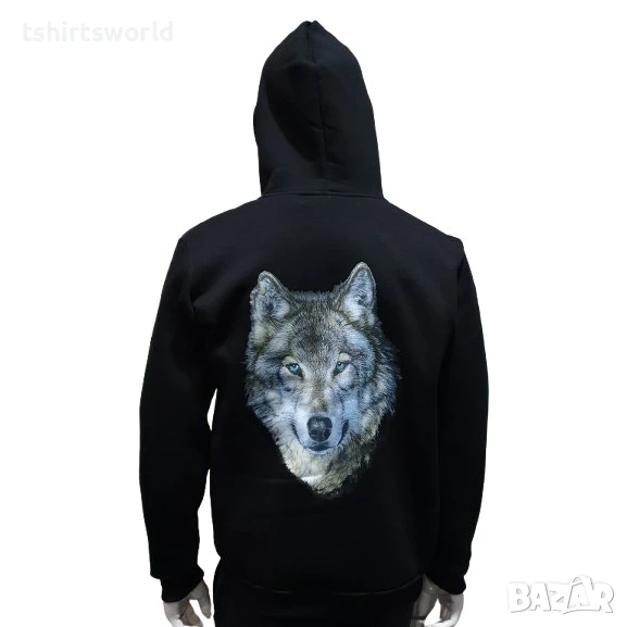 Нов мъжки суичър с ЦИП и трансферен печат Вълк със сини очи, Серия Вълци