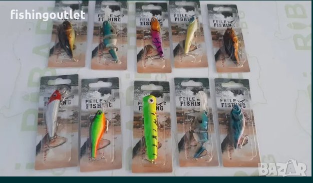 но всеки комплект съдържа различни по форма и цвят воблери.
