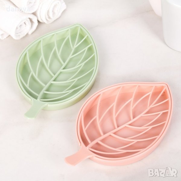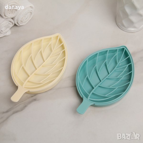Красива сапунерка с форма на листо. Състои се от две части – основа, в която се събира остатъчната вода, когато оставиш сапуна върху сапунерката и горна част с дръжка, с която ще вдигнеш сапуна, за да изхвърлиш водата. Прекрасен аксесоар за баня или кухня. Изработена от пластмаса, предлага се в различни цветове.