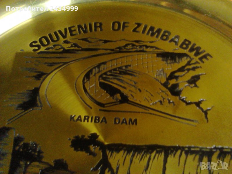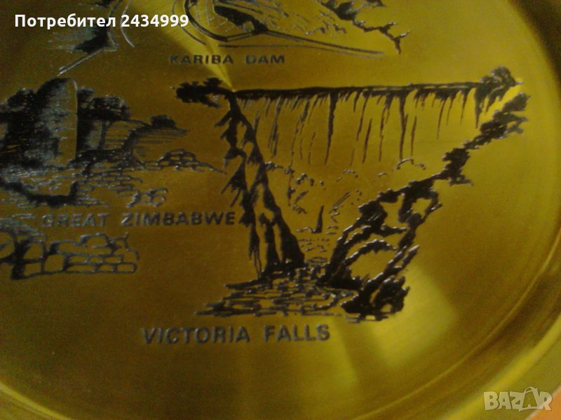 Продавам поднос от висококачествена чиста мед от Зимбабве , Ф 27.5см и 5мм дебелина на основата, с гравирани изображения на стената на язовир Кариба ,на едноименното най-голямо езеро в света построено от чевек , на река Замбези,250км дьлго и около 22км широко, Велико Зимбабве, една средновековна архитектурна загадка и на водопада Виктория, един от най-големите в света.