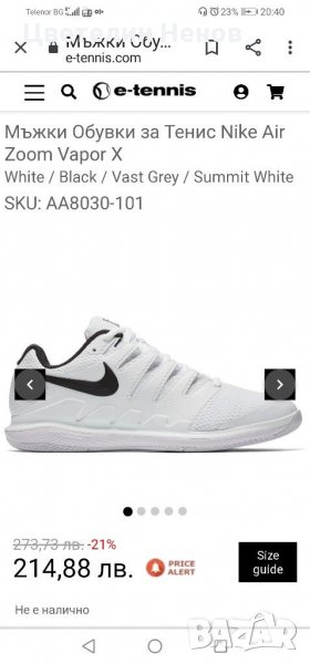 Почти не са използвани. Много запазени. Маратонката Nike Air Zoom Vapor X HC, подходяща за тенис, осигурява най-добрия контрол на корта, със системата Nike Zoom Air и Dynamic Fit. Разполага с дишаща горна част (кожа) с трайни фокусни точки, увеличаващи живота на обувката.