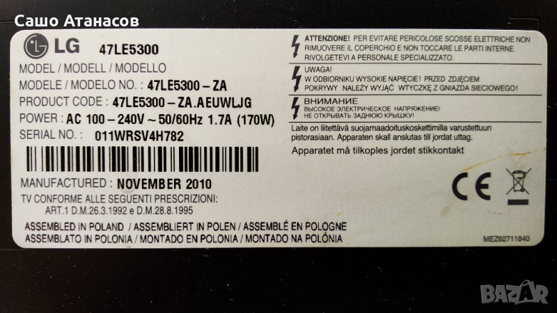 LG 47LE5300-ZA с дефектнa матрица (панел LC470EUH (SC)(A1) )