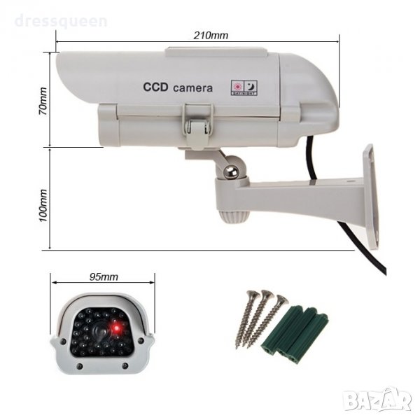 Соларният панел на Dummy Camera може да зарежда батериите, така че никога да не се притеснявате да ги замените.Изглеждайки точно като истинска камера за видеонаблюдение, тази Dummy Camera ще изплаши потенциалните крадци и вандали само на част от цената за истинска камера.