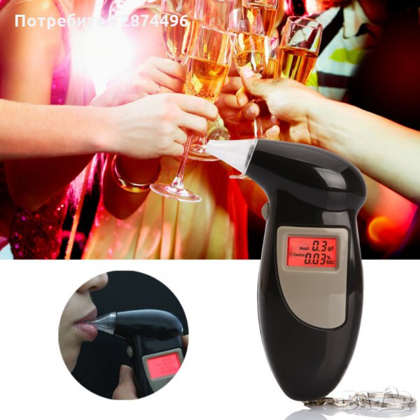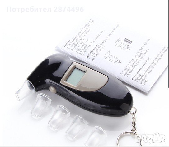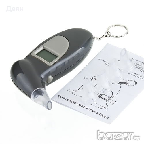 Предназначението на това устройство е да измерва процентното съдържание на алкохол във Вашия дъх. Tака Вие ще знаете какво количество алкохол може да изпиете преди да управлявате автомобил.Характеристики:• LCD дисплей• Параметри на отчитане: 0.00-0.19%BAC 0.0-1.9g/l• Автоматично изключване след 10 секунди• В комплекта са включени 5 броя мундщуци• С ключодържател (включен в комплекта)• Работи с 2бр AAA алкални батерии (не са включени в комплекта)• Размери: 95x36x18mm * Време за реакция: 10 секунди* Време за отговор: 5 секунди* Работна температура: от 5 до 40 градуса* Звуков сигнал според концентрацията на алкохолНачин на употреба: • Натиснетете бутона за включване за около 2 секунди• На екрана се изписва “Warm up” (Подгряване) за 10 секунди• След което се чува звуков сигнал и се появява символа „Blow“• Издишайте в мундщука за около 5 до 10 секунди• На дисплея автоматично се появяват вашите данни за концентрация на алкохол.