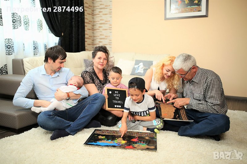 Интересни инфографики в долната част на картата разкриват богата информация и факти за света, който споделяме.