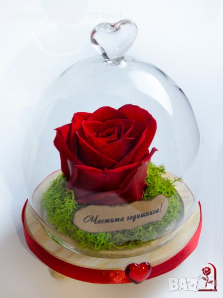 Вечна ЕСТЕСТВЕНА роза в Стъкленица / Интересен Подарък за Приятелка / Подарък за Годишнина