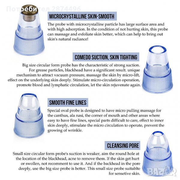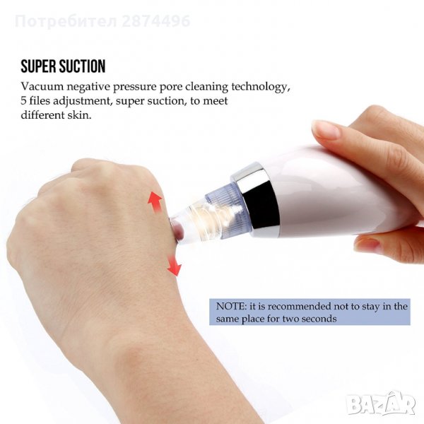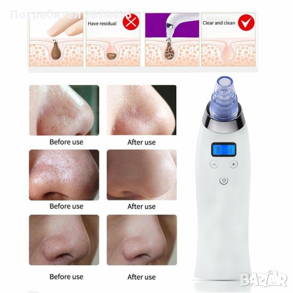 Вакумен уред за ексфолиране на мъртва кожа, премахване на черни точки, комедони, омазняване и др. Засилва кръвообръщението на кожата, подобрява еластичността и премахва малките бръчици. Уреда има LCD дисплей, акумулаторна батерия и 5 степени на работа.