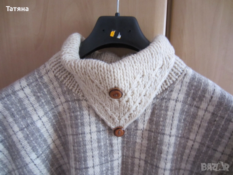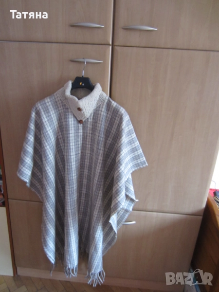 СНИМКИ 8-10 ;ПОНЧО ; 100% ВЪЛНА ;Плата е много фино тъкан /не стои като груб вълнен плат, но топли като родопско одеало / Дължина -110см; Широчина -110см; ЦЕНА- 30 €