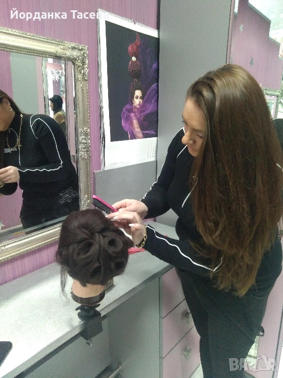 Изсушаване на коса, изработване на официални и булченски прически, ролки, видове маши и работа с различните видове преси, видове