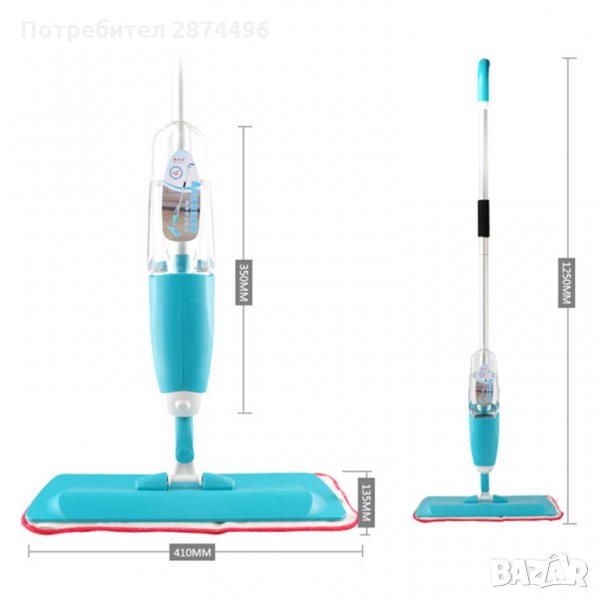 1 бр. Спрей Моп с резервоар за вода и препарат с размери 128 х 40 х 15 см;