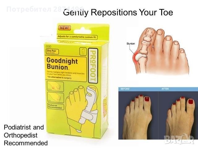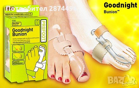 Goodnight bunion е удобен, безопасен и високо ефективен. Намалява напрежението в областта на големия пръст, което се създава от съществуващите позиционни промени в ежедневието на човек.