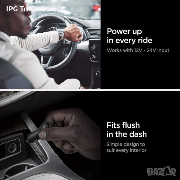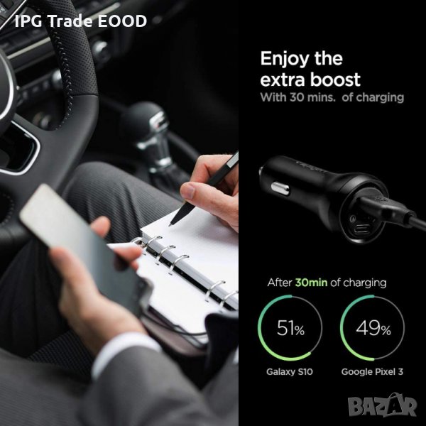 Spigen Зарядно за кола 45W USB C, Quick Charge 3.0 18W