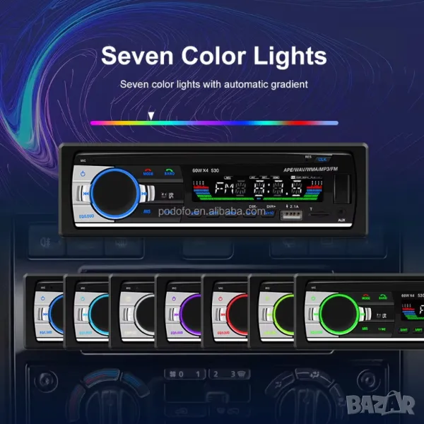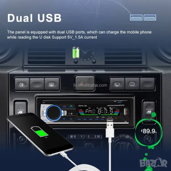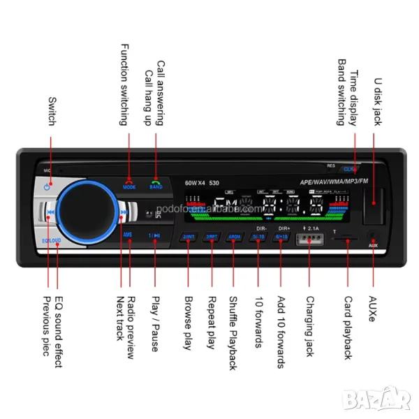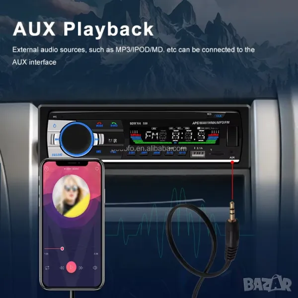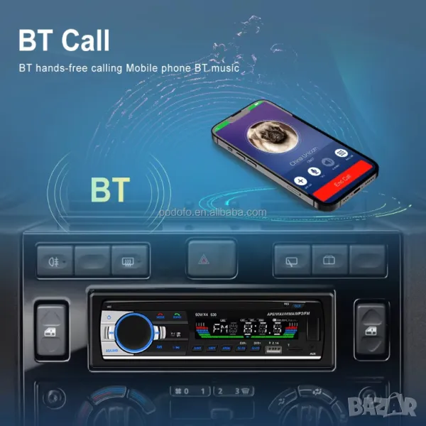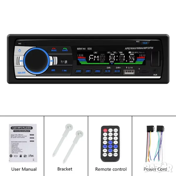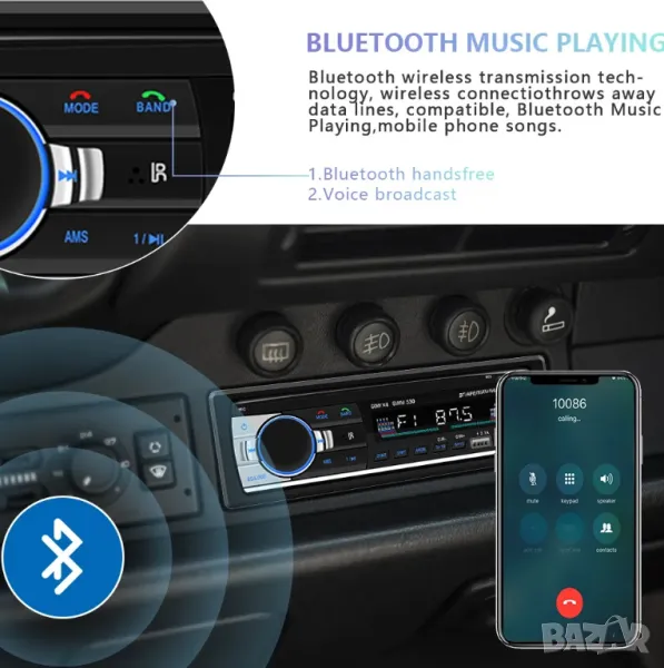 Топ цена! Висококачествен плеър с дистанционно, USB, микрофон за разговори, Bluetooth, SD карта, AUX пускане на музика от телефона, USB възможност за зареждане на телефон.