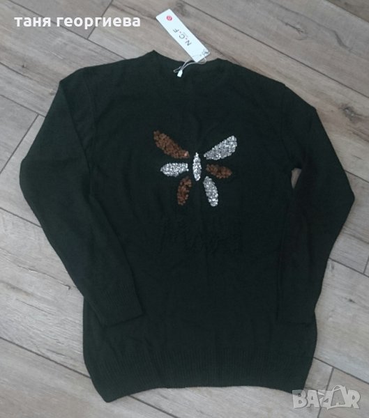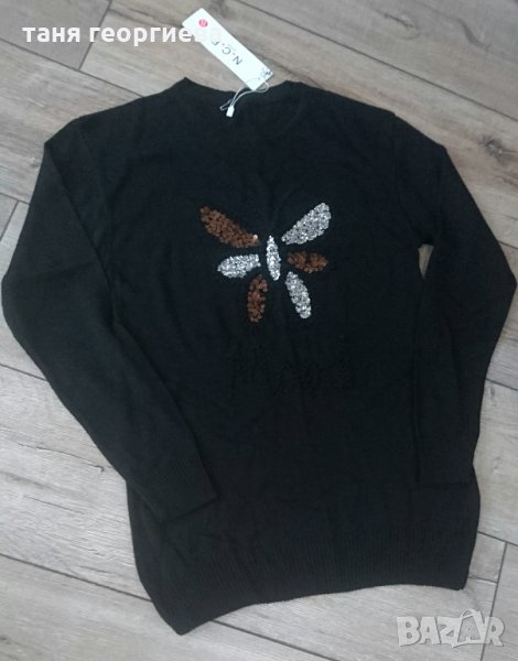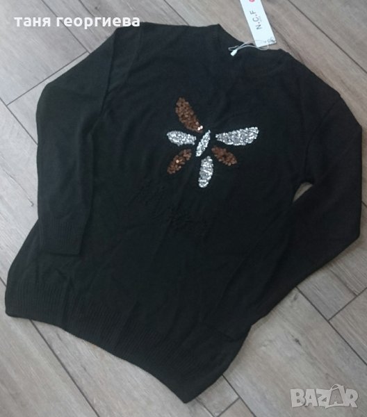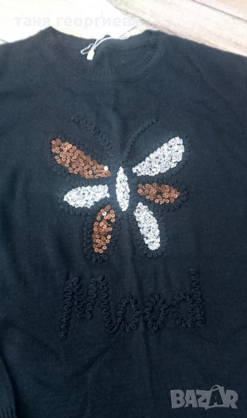 Плетена нежна блуза тип пуловер от фино машинно плетиво със страхотна апликация отпред и пайети,