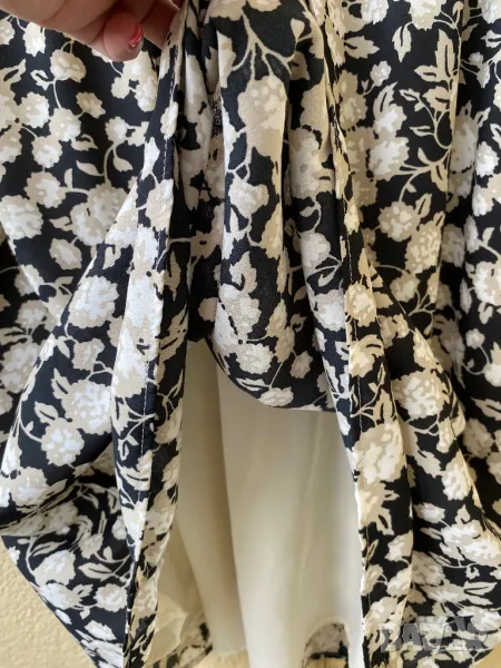- жакардова тъкана материя, с подплата, с малка столче яка и връзки отпред