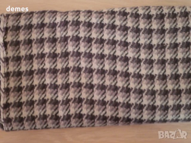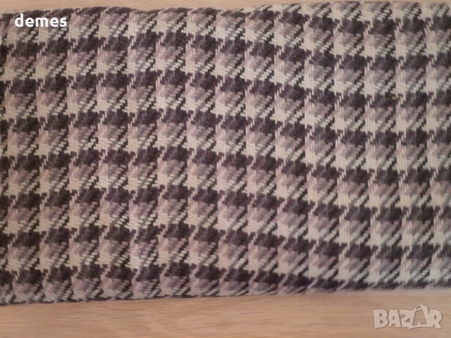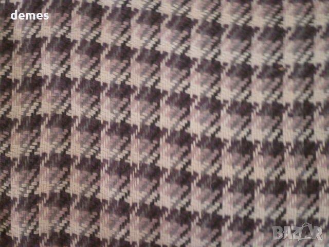 Кариран вълнен плат-нюанси на по-тъмно, по-светло лилаво и бяло.