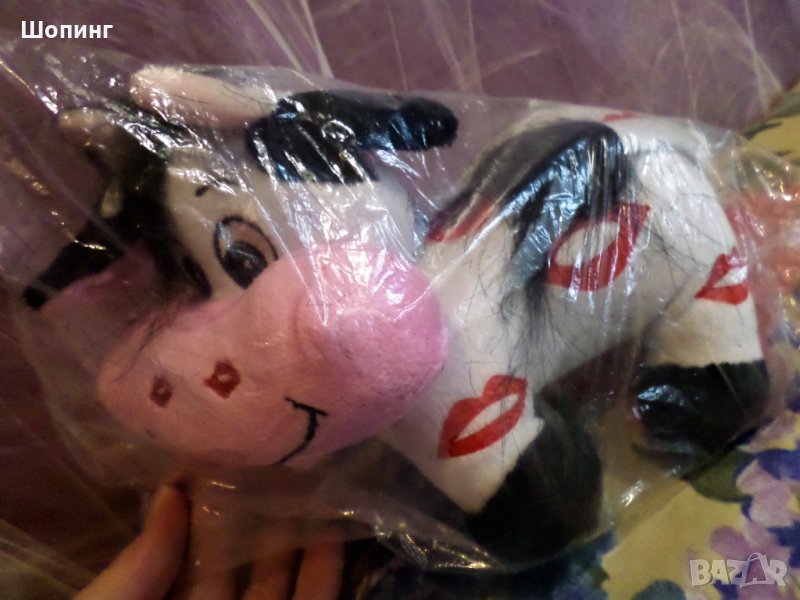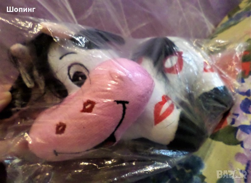 Мека симпатична крава в опаковка, с целувки по тялото, плюш, Размер: 20 см. Снимките са през опаковката.