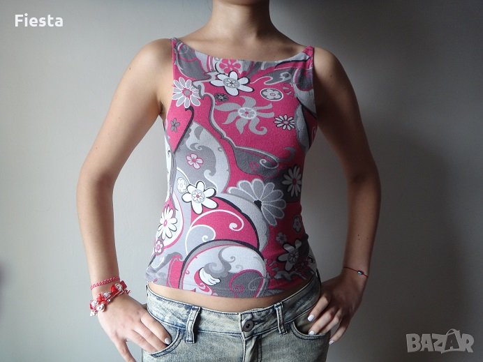 Потник, на гърба е с ластици, отпред различни цветове, флорални мотиви. Размер XS/S. Един път е слаган.