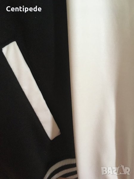 Бомбър яке Adidas Originals, оригинално, отлично състояние, с ръкави от висококачествена еко кожа, размер S, но според мен подходящ и за XS. Мерките са: ширина мишница до мишница 52 см. , от рамо до края на ръкава 59см.