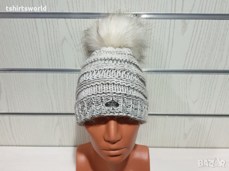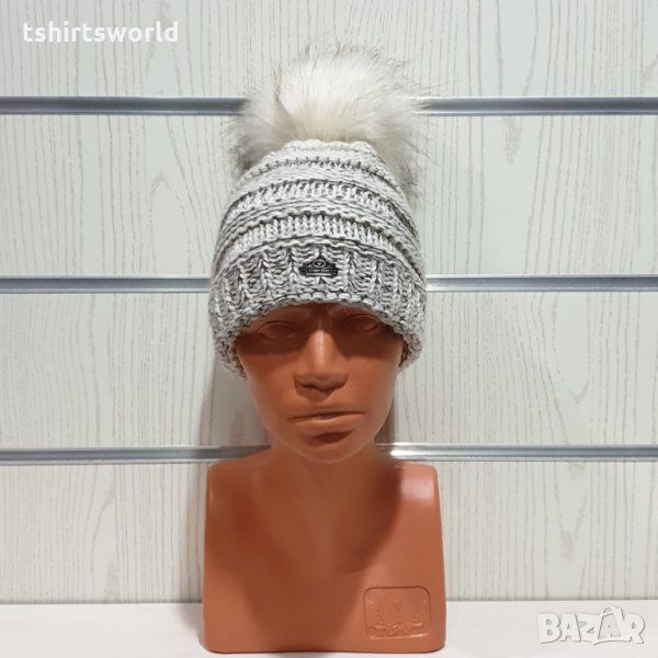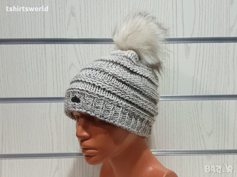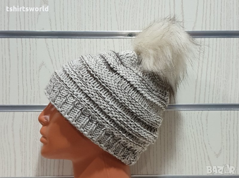 Нова дамска плетена шапка бял меланж с помпон/пух → Обява 30963144