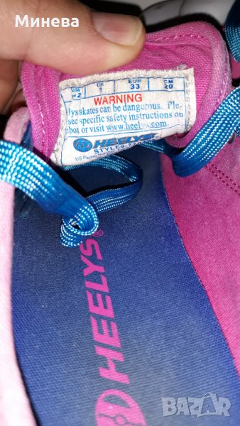 Оригинални кецове с колелца HEELYS, в свежо розово, с по две колелца на обувка за повече стабилност при каране, гумена подметка за отлично сцепление с всички настилки, голямо черно лого на марката и светещи вързалки посредством бутони отпред за включване и изключване на светлините на връзките. Изпробвани няколко пъти в домашни условия, като нови. Номер 33 и дължина на стелката 20 см.