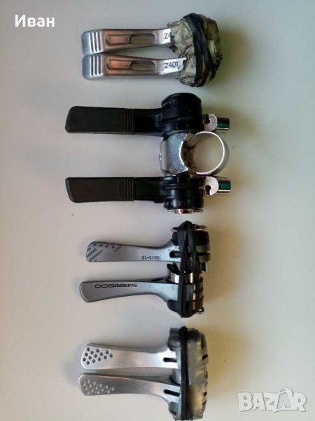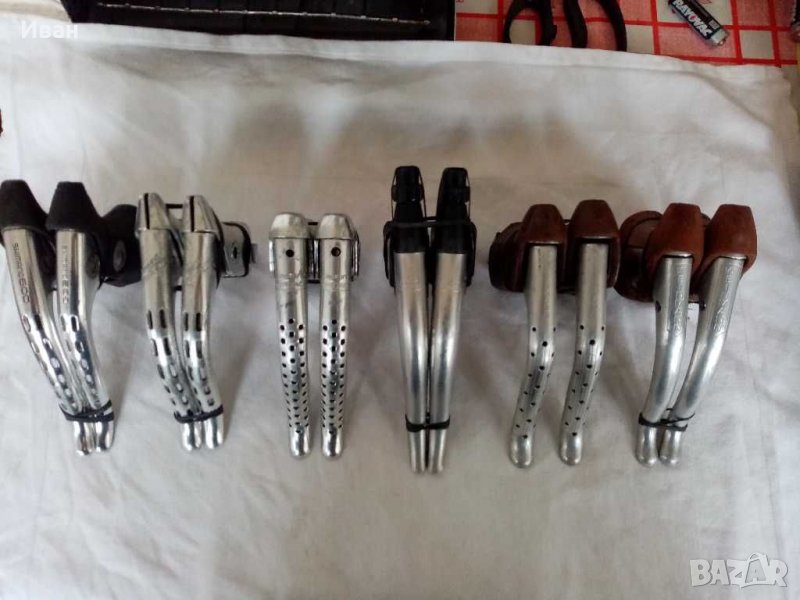 Шосейни части - Спирачни лосчета + команди / Sante /- 110 лв, Команди за квадрати - Shimano - 600, 105 по 40 лв, другите със скоба та - 35 лв, и крайните - 25 лв., Веригите - 1. Shimano - HG CN - HG 53 -9 скорости -15лв, KMC - Z NAROW - 15 лв, KMC - X9 - silver - 25 лв, 9,10,11. скорости.Спирачните лосчета