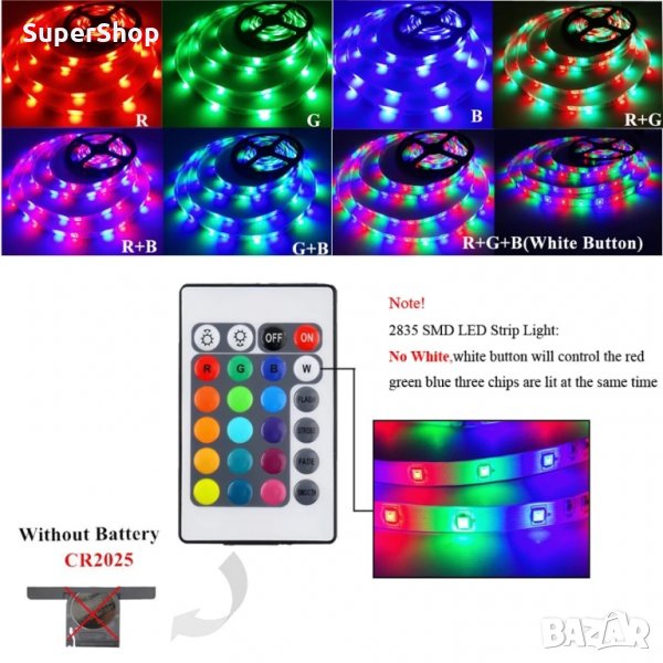 С дистанционно RGB LED цветна лента 5 метра за коледна украса ленти