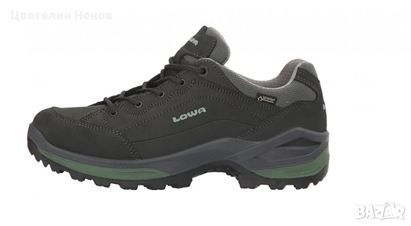 обувани веднъж , неразличими от нови , без забележки Най добрия и продаван модел на Лова , по магазините е над 300 лева Многофункционална обувка с фантастично прилепване. Обувката е отлична за разходки в гората и полетата, леки планински преходи и развлечения.Подметката Vibram Evo осигурява много добро сцепление. Горната част е изработена от висококачествен набук и велур. Gore-Tex мембраната прави обувката водоустойчива. Перфорацията в облицовката позволява на въздуха да прониква едновременно с изпомпването на влага и топлина. Междинната подметка в рамка от полиуретан и Monowrap осигурява отлична амортизация и стабилност. Бестселър от много години.Описание на LOWA Renegade GTX Lo Ws Дамска обувка - Ниско изсеченият турист RENEGADE GTX® LO Ws е оборудван с най-добрите предпоставки, за да се превърне в истинска класика. Това чудо на удобството беше оптимизирано за пореден път, когато става въпрос за комфорт и омекотяване. Хватката подметка Vibram®Evo Trac® и нейната гъвкавост на предните крака са впечатляващи, докато трайната набукова кожа с мембрана GORE-TEX® предлага най-добрата защита от атмосферни влияния за взискателните женски крака. Един супер удобен туристически турист с нисък разход за туризъм или друг повод.Характеристики на дамската обувка Renegade GTX Lo WsГарантирана защита от атмосферни влияния, дори при проливен дъжд и обилен сняг: Иновативната технология GORE-TEX® осигурява оптимална водоустойчива защита и дишанеПодметка Vibram® за изключителна поддръжка на най-широкия тип терен и оптимална устойчивост на абразияДвойно инжектиране: Подметката е директно прикрепена към горната част, за да осигури оптимална амортизация и подобрен комфортСпециален дизайн на междинната подметка за поддържане на стъпалото на местата, които са подложени на голям стресМек найлонов стабилизиращ елемент, интегриран в подметката за по-добра стабилизацияИзключително стабилен и висококачествен подвиг на междинната подметка. LOWA DynaPU® материалУстойчива на износване и гъвкава гумена подметка с удобни характеристики на търкалянеПодметка: Vibram® Evo Trac®Профил на протектора, ориентиран навънМного добро сцепление на разнообразен теренСпециален дизайн на протектора на пръста и петата за подобрено сцепление при изкачване и спускане