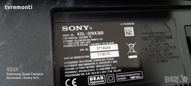 SONY KDL-32EX400 KDL-32BX300 PANEL:SAMSUNG LTY320AP04 Борда е гарантирано работещ Демонтиран от телевизор SONY KDL-32EX400 KDL-32BX300 със счупен дисплей LTY320AP04 тесвана от нашия техник