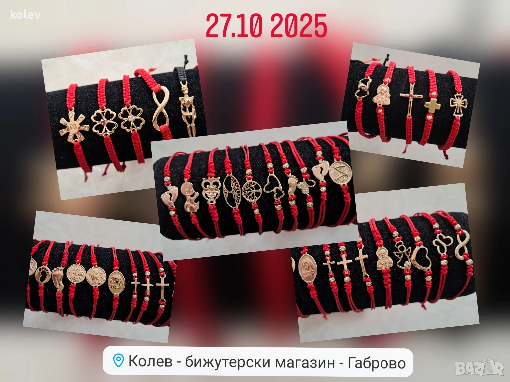 златна пеперуда (мини) и 2 топчета в гривна с червен конец