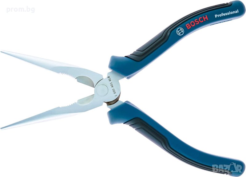Bosch Professional /синя серия/ клещи, комбинирани, резачки, секачки, дълга човка, внос от Германия. Размери: комбинирани клещи 180 мм; странични резачки 160 мм; клещи с дълга човка 200 мм. Дълъг експлоатационен живот, благодарение на здравата хром-ванадиева стомана и закалени режещи ръбове.