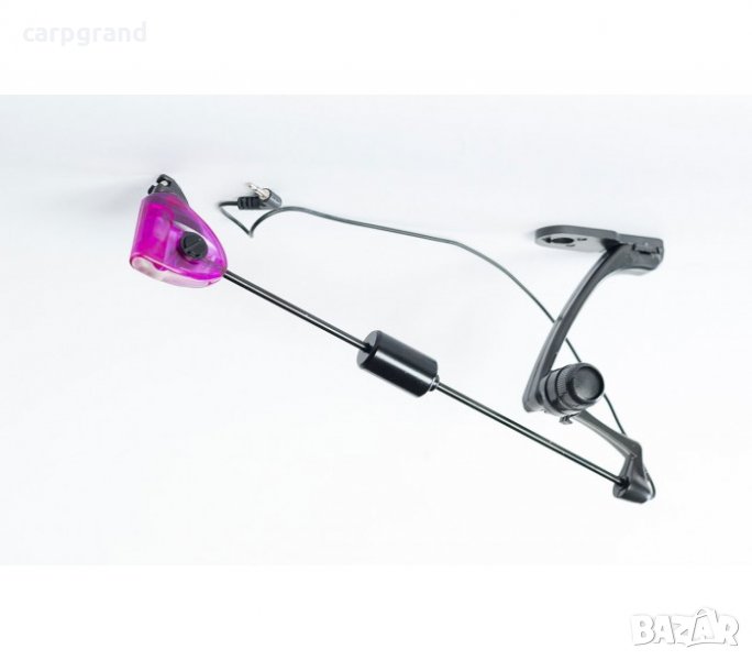 Комплект светещи обтегачи CarpMax Swingers PURPLE – 3бр Великолепен комплект от три светещи обтегача за шаранджийски риболов. Обтегачите са изцяло в лилав цвят. Оборудвани са с балансираща подвижна тежест за регулиране на напрежението върху линията. Рамото на обтегачите е снабдено с пружина с две степени на натегнатост.
