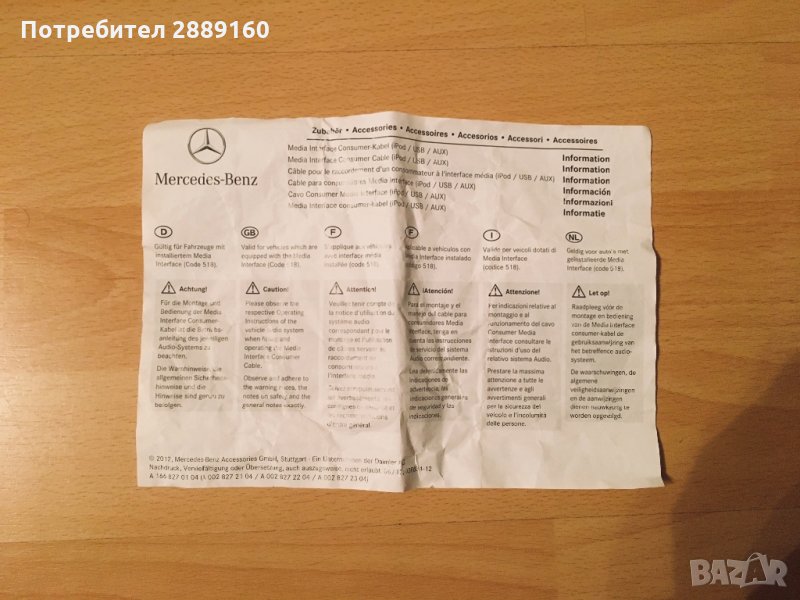 Оригинални USB/AUX/Ipod Multimedia Interface кабели за Mercedes → Обява 31008081