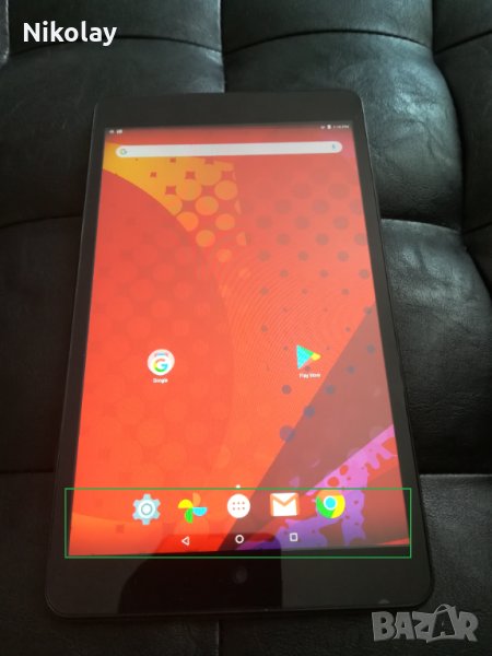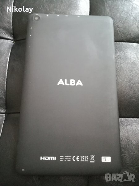 Продавам 8 инчов таблет Alba 8” Tablet. Външно, няма драскотини, пукнатини и счупвания. Като забежка мога да посоча само екрана. Екрана има ивица от около 2см., която не реагира. Просто touch-a не работи в тая зона. Отбелязъл съм горе долу къде се намира на една от снимките. Не пречи кой знае колко на ползването, защото може да въртите таблета в подходяща посока така че да избегнете тази зона, ако трябва да натиснете например бутон, който се е появил там. Иначе за гледане на клипчета например става.
