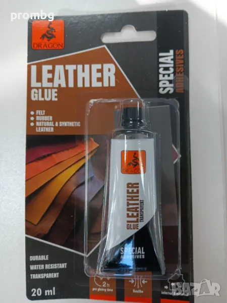 - лепило за кожа (кафяв надпис) 20 мл, предназначено за студено залепване на кожа, колани, чанти, гума, филц, обувки и др. Посочената цена е за 1 бр. лепило.