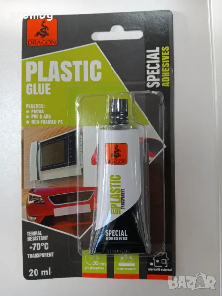 - Лепилото за пластмаса е налично и в разфасовка 50 мл. на цена 14 лв/7.16 евро.