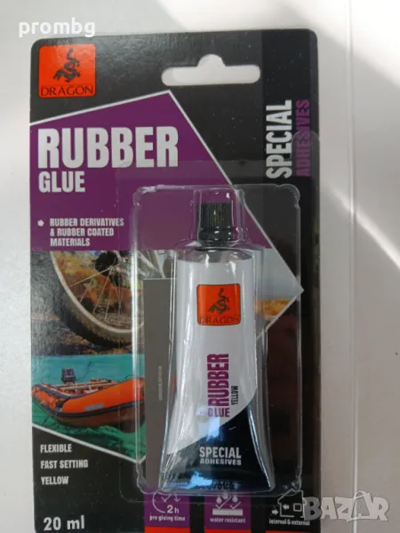 - лепило за гума (лилав надпис) 20 мл, предназначено за залепване на каучук, кожа, текстил. филц, керамика, дърво, корк, пластмаса и др.