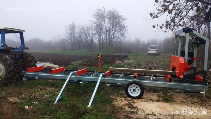 - може ефективно да реже трупи с дължина 5м с възможност за удължаване на релсовият път до необходимото.