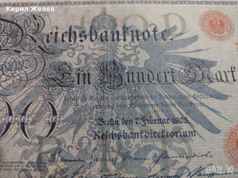 Райх банкнота - Германия - 100 марки / 1908 година червен печат- 17978 → Обява 31015628